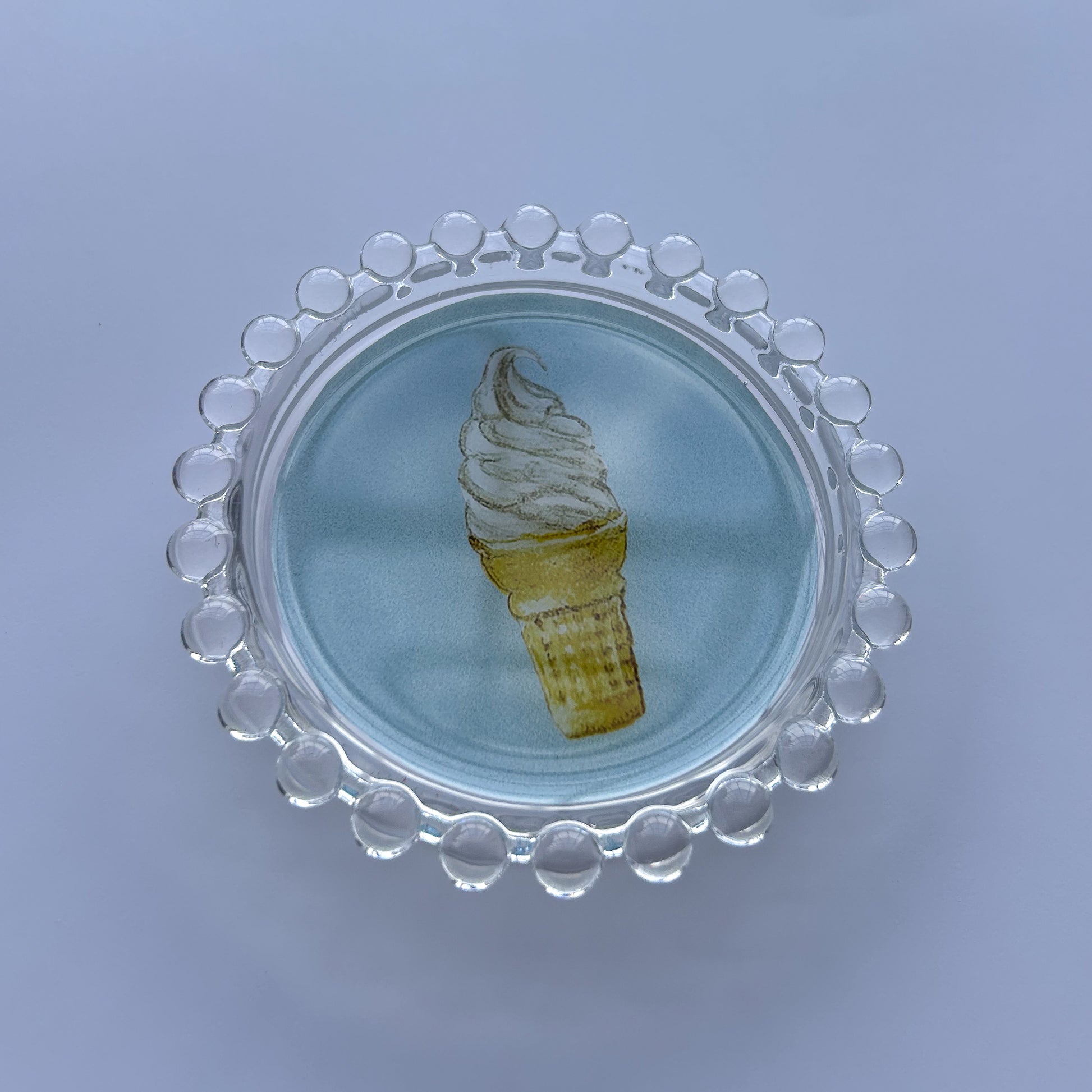 Original illustrations hand-set into 4" glass dishes with food-safe epoxy resin. Made in Brooklyn, NY.